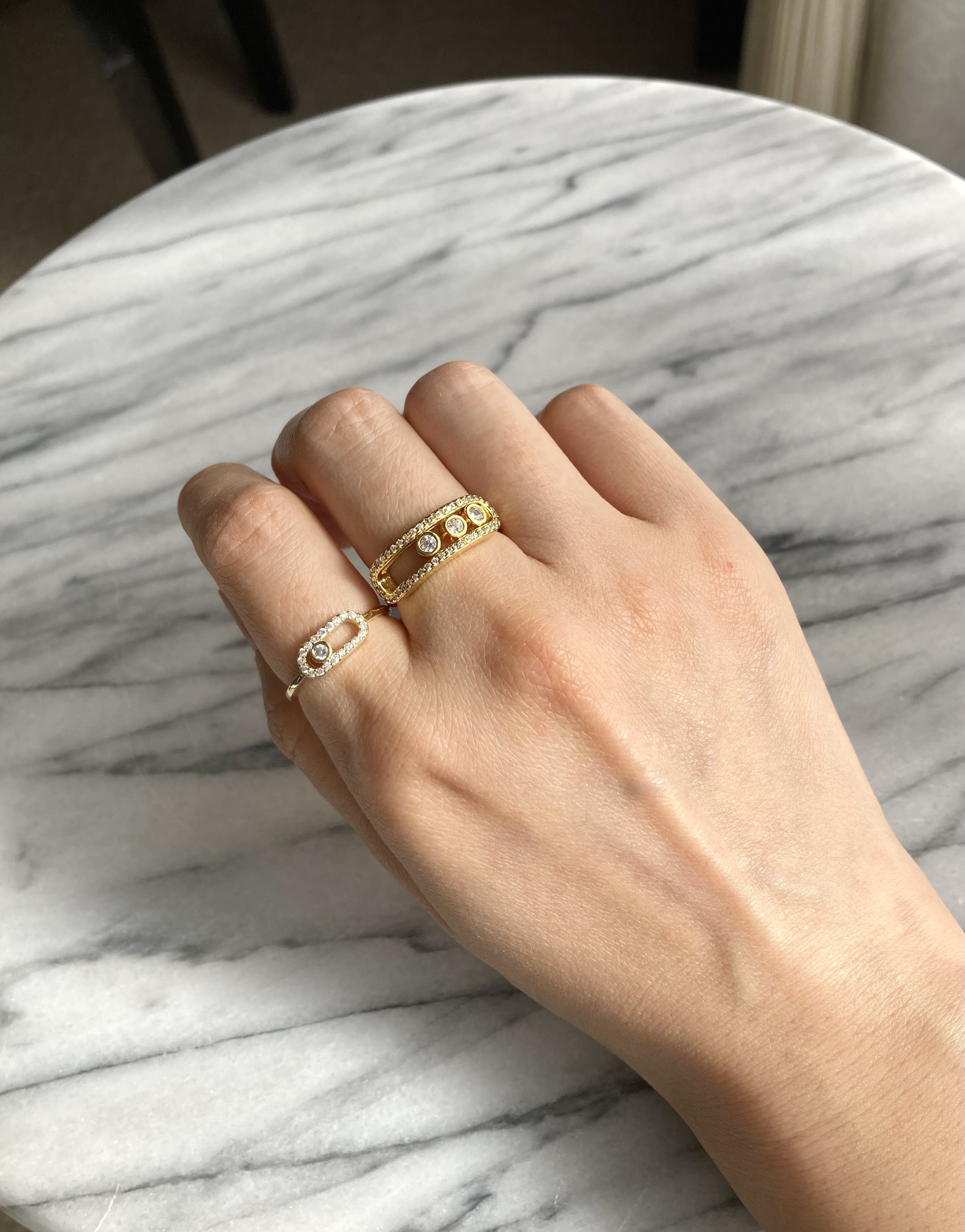 クリップリングだけでも存在感があり素敵ですが、クリップリングM、ピアス、ネックレスと、クリップモチーフを重ねづけすると楽しげで、更におしゃれです。
