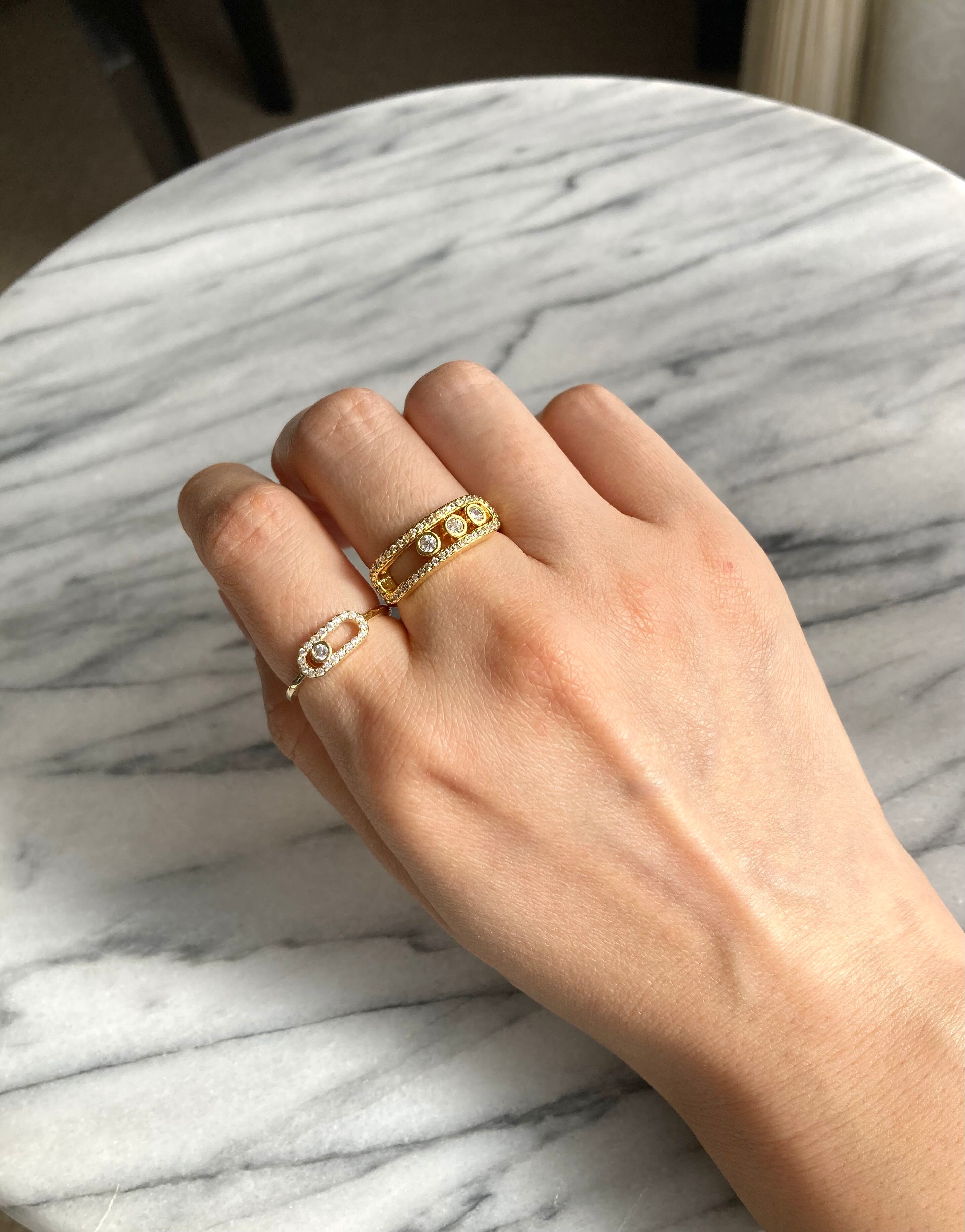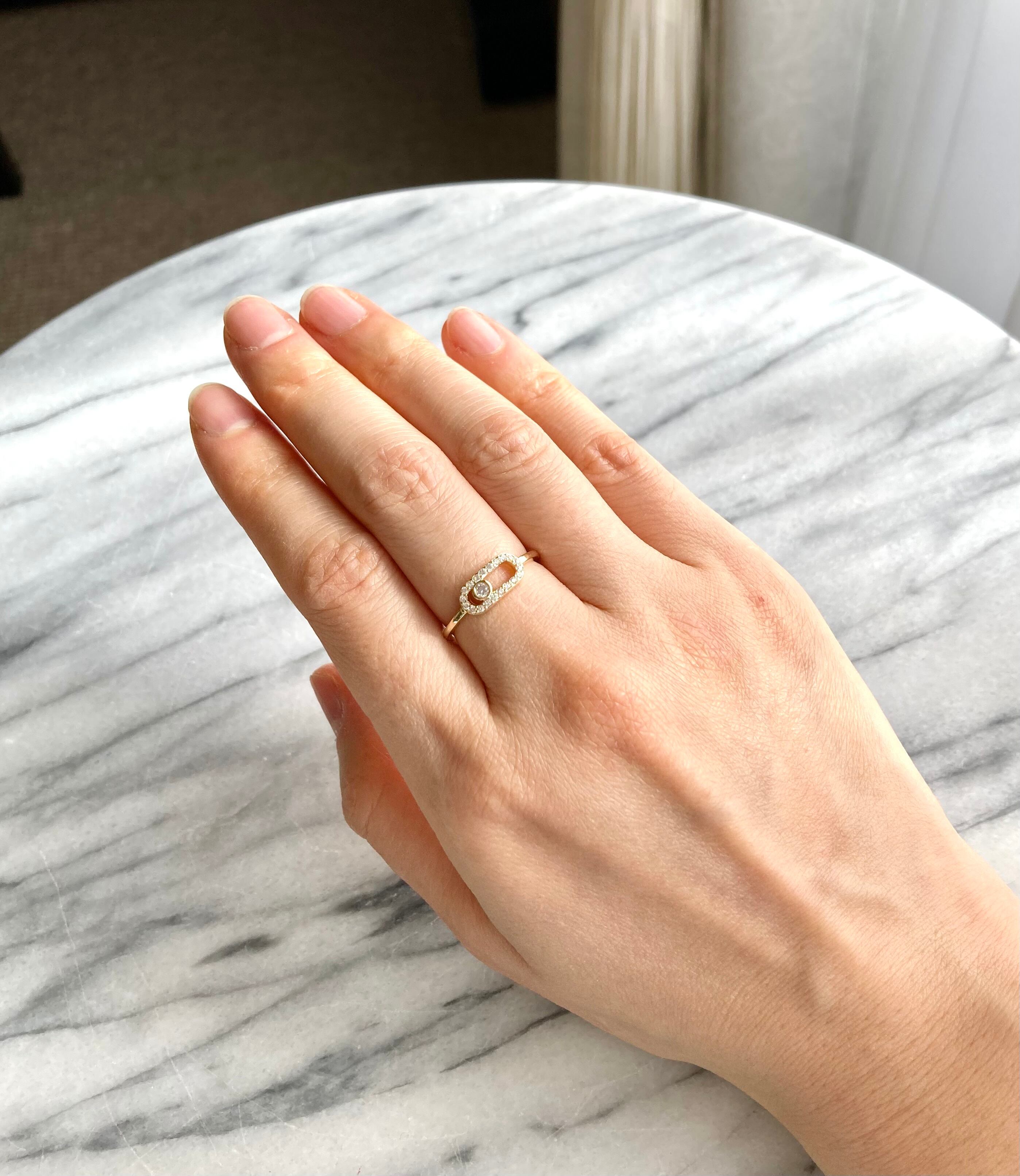 ペーパークリップのような形をしたゴールドカラーのリングです。