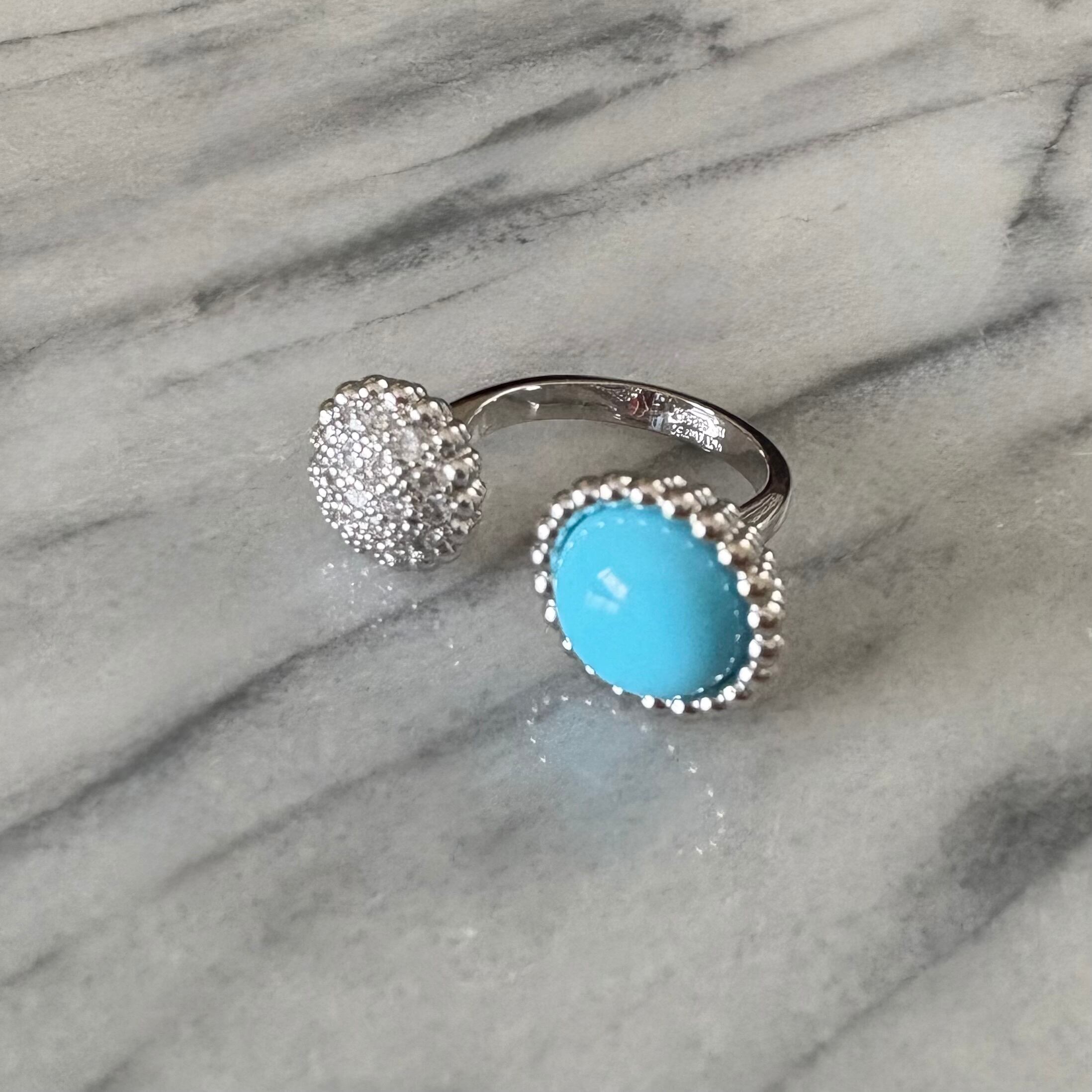 ブルーストーンとジルコニアがシックでエレガントなリングです。