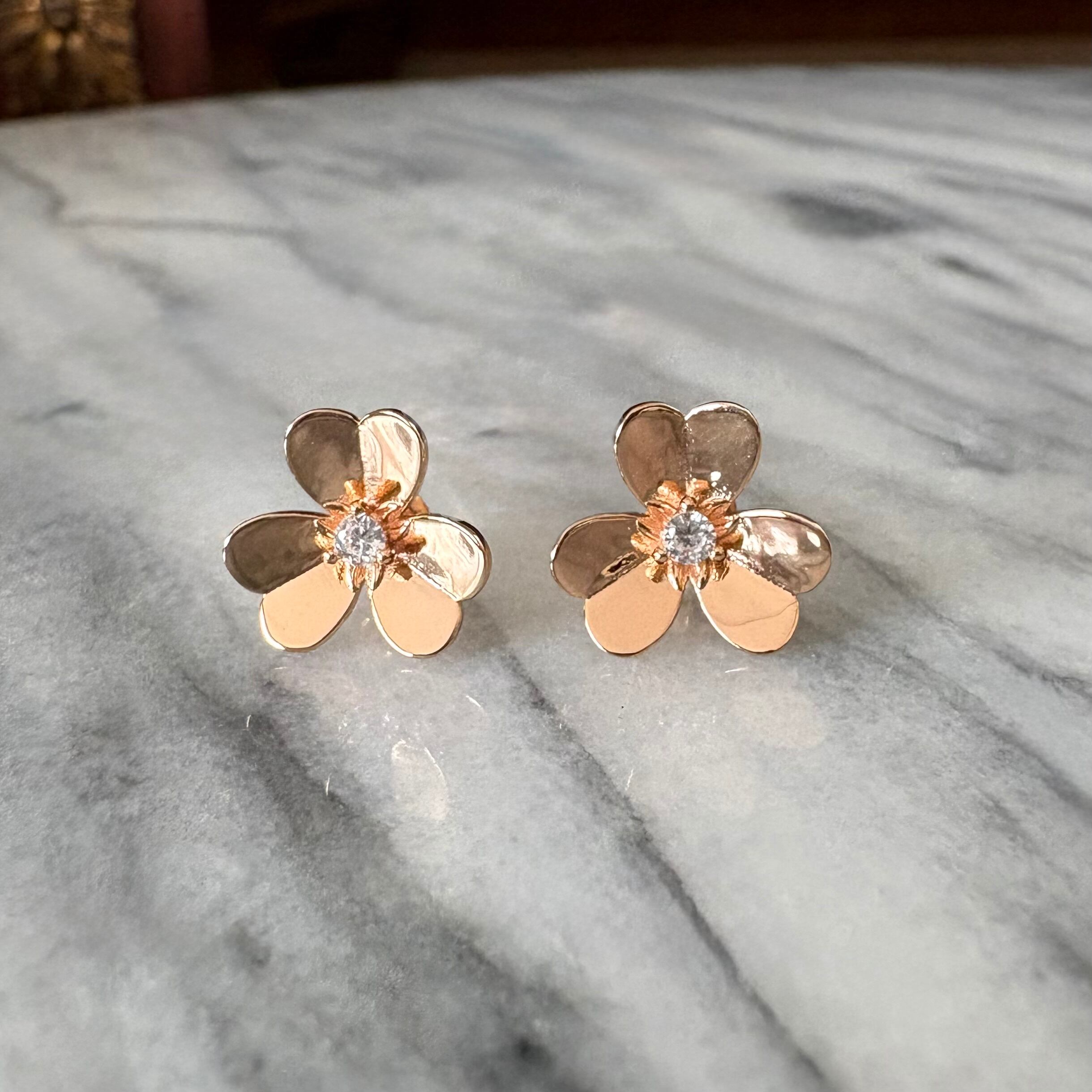ピンクゴールドカラーのクローバーピアスです。