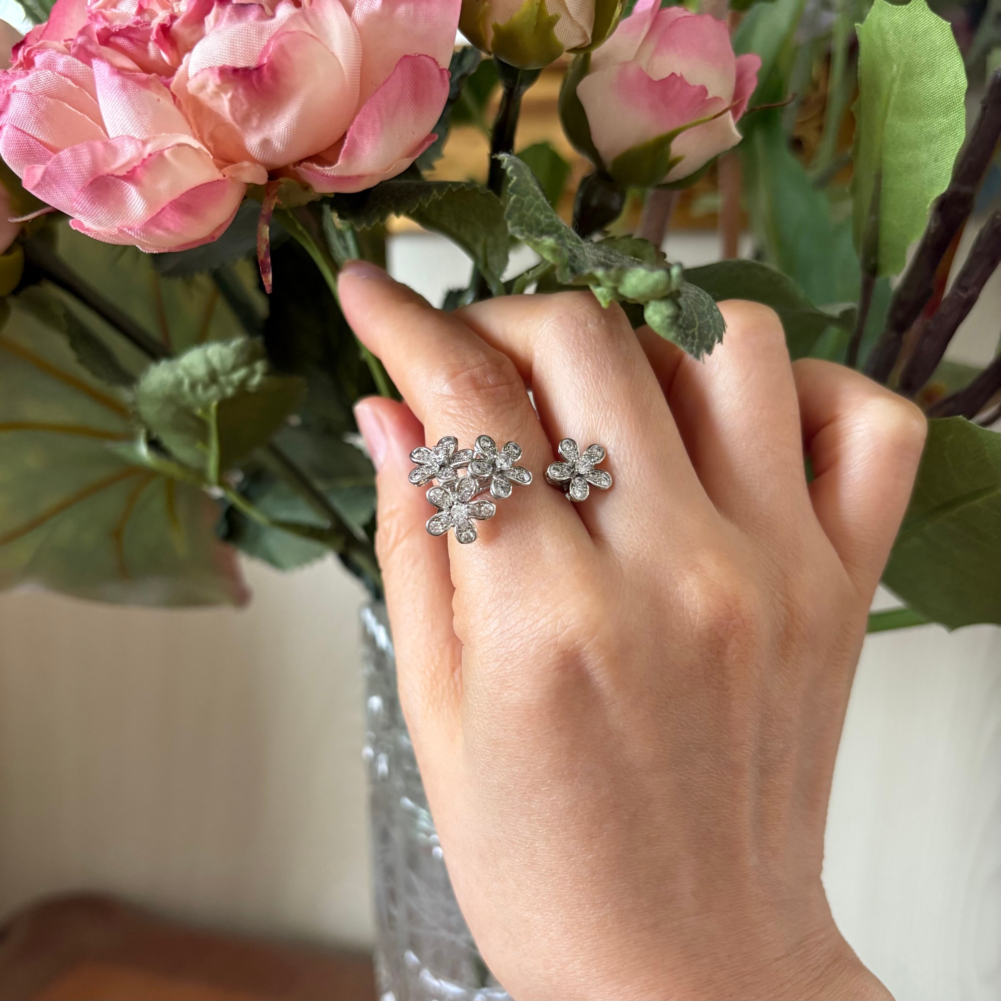 ジルコニアが煌めく小さな花が花束のように指を包み、手元を華やかに楽しげに彩ってくれます。