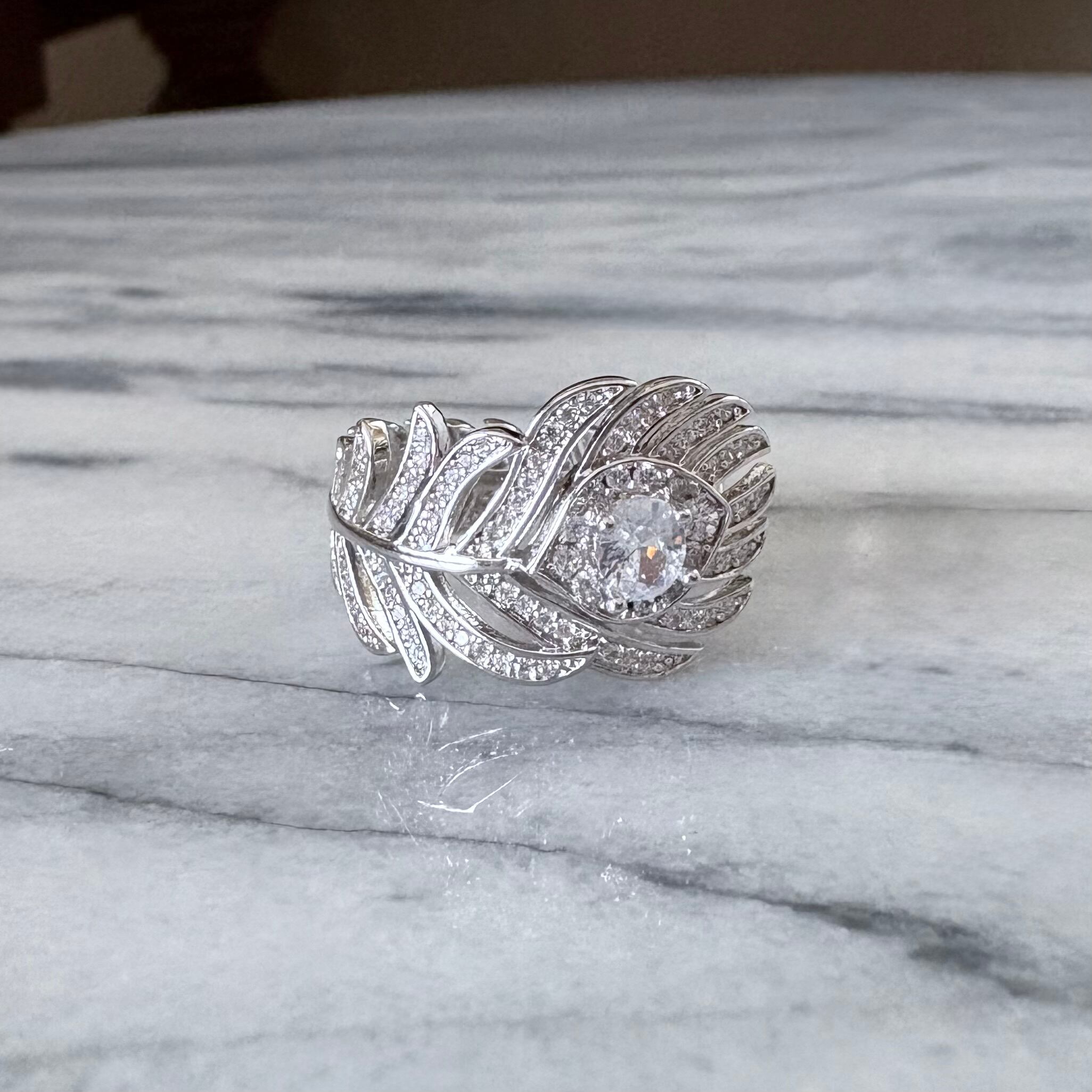 ジルコニアが煌めくシルバーカラーな葉はエレガントなシルエットで、手元に華やかさと品を与えてくれます。