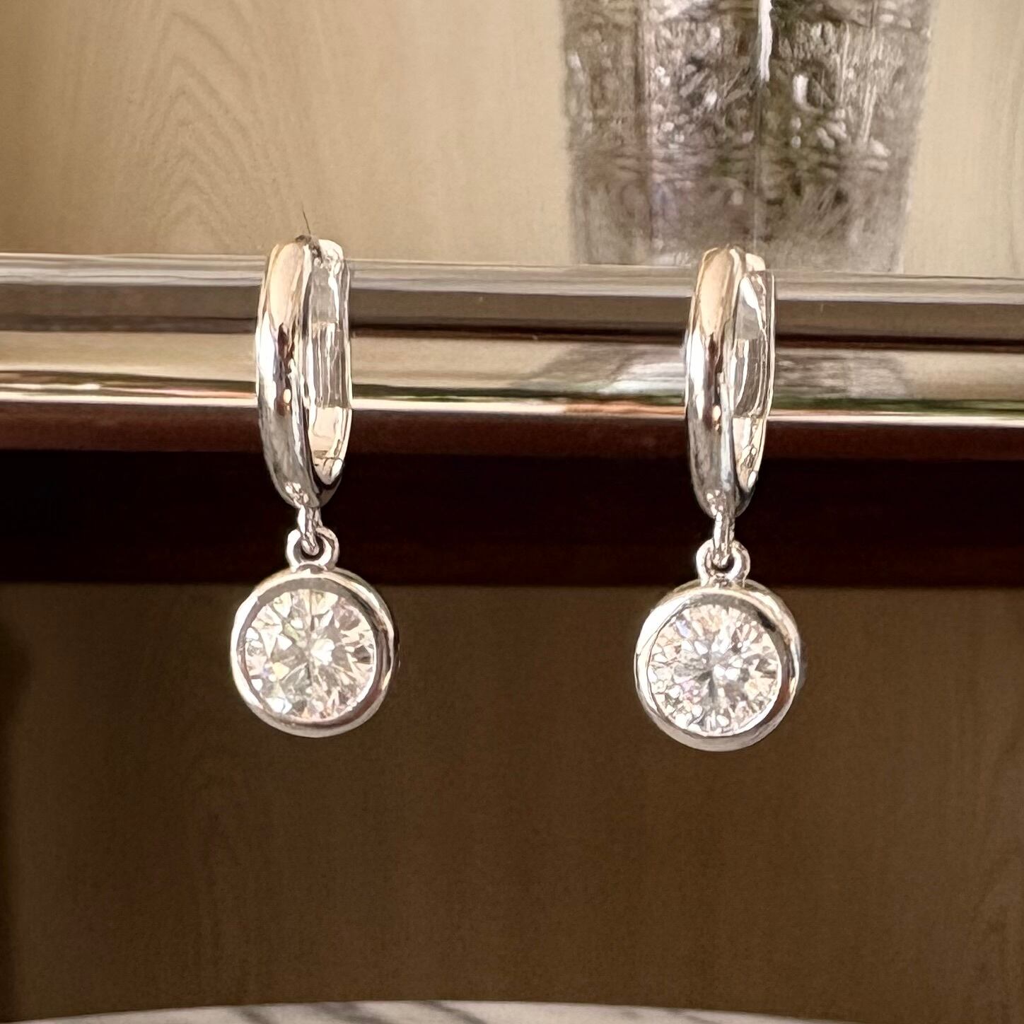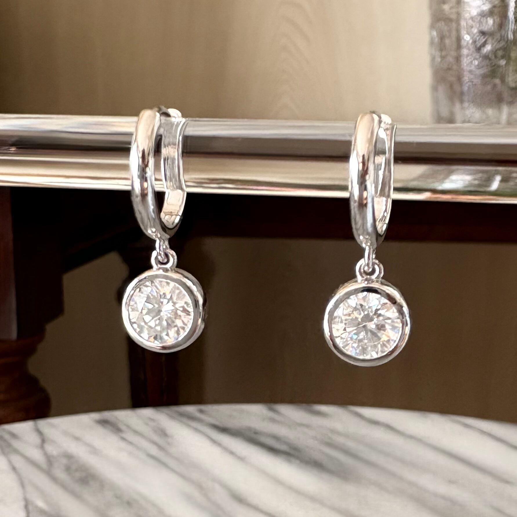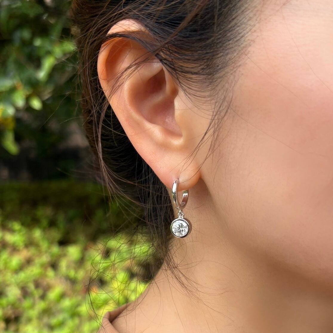 最高級人工ダイヤモンド、モアサナイトを使用した一粒ドロップピアスです。