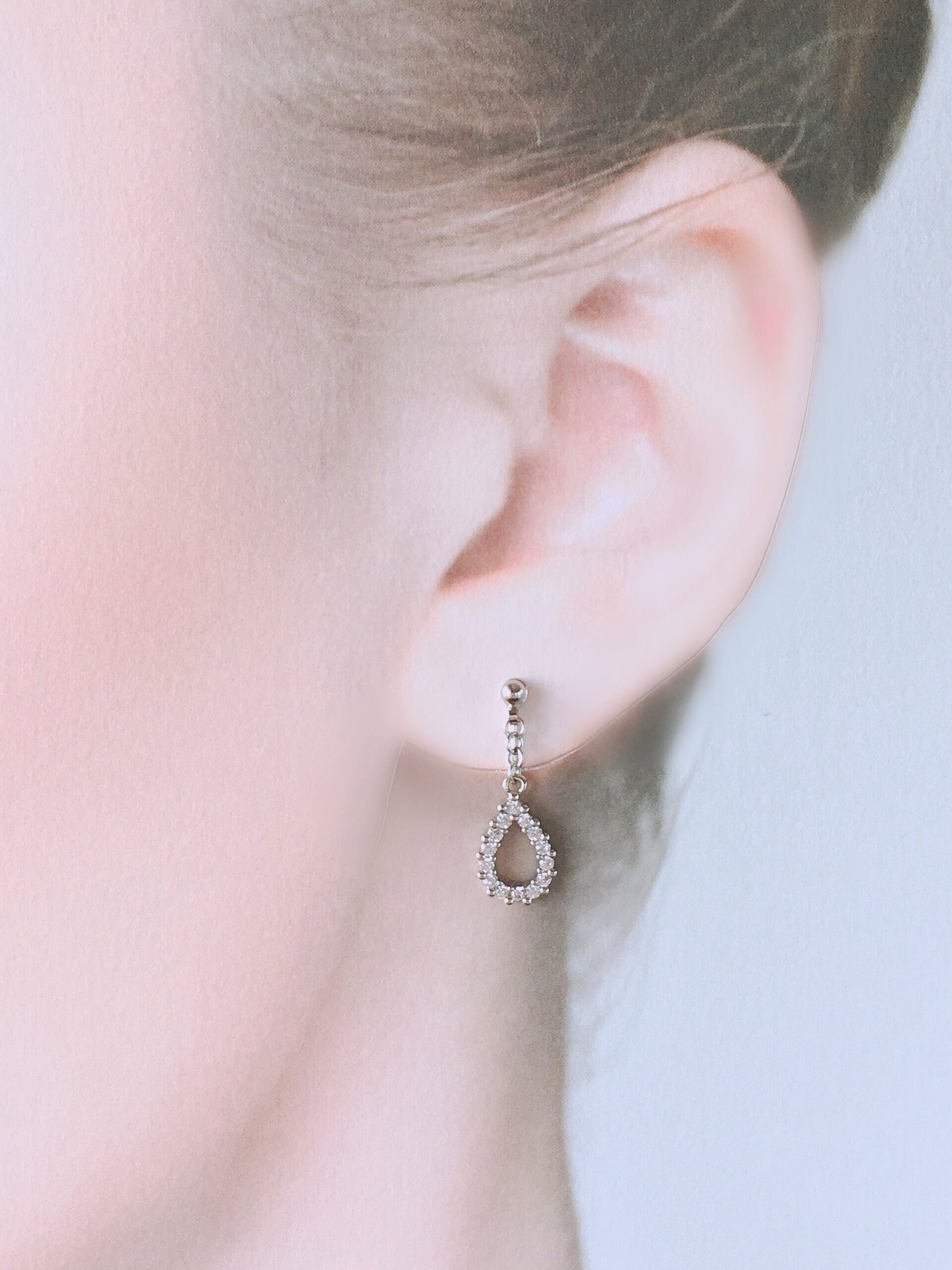 しずく型にキュービックジルコニアがはめ込まれた、シルバーイヤリングです。