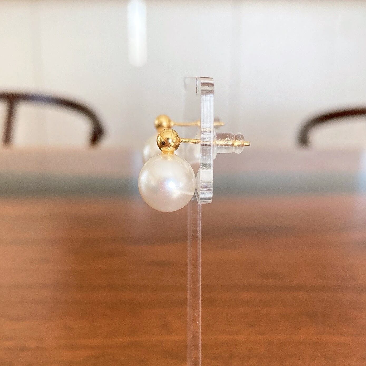 シンプルなデザインですが、雪だるまのようなゴールドカラーボールとホワイトパールがくっついたかたちがユーモラスで可愛いらしく、目を惹きます。